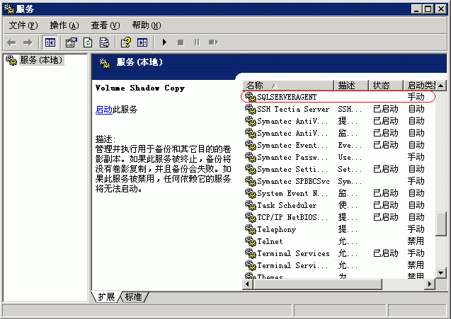 首先,我们远程登陆服务器,先开启"SQLSERVERAGENT"服务,点击开始---程序---管理工具---服务,并在“服务”中开启